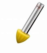 Does a thorough job As are all Rosle tools I've used, this reamer is well-conceived and a great addition to the gadget collection. Does a terrific job of getting out all juices in citrus fruits. Very nice product This is a great citrus juicer/reamer. Handle is brushed stainless and feels very solid. End piece is a cheery bright yellow and feels very hard. You can't go wrong with Rosle products. They are so well made and last forever. Highly recommended.